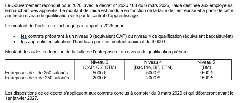 Renouvellement du soutien du Gouvernement à l’alternance pour 2026 :